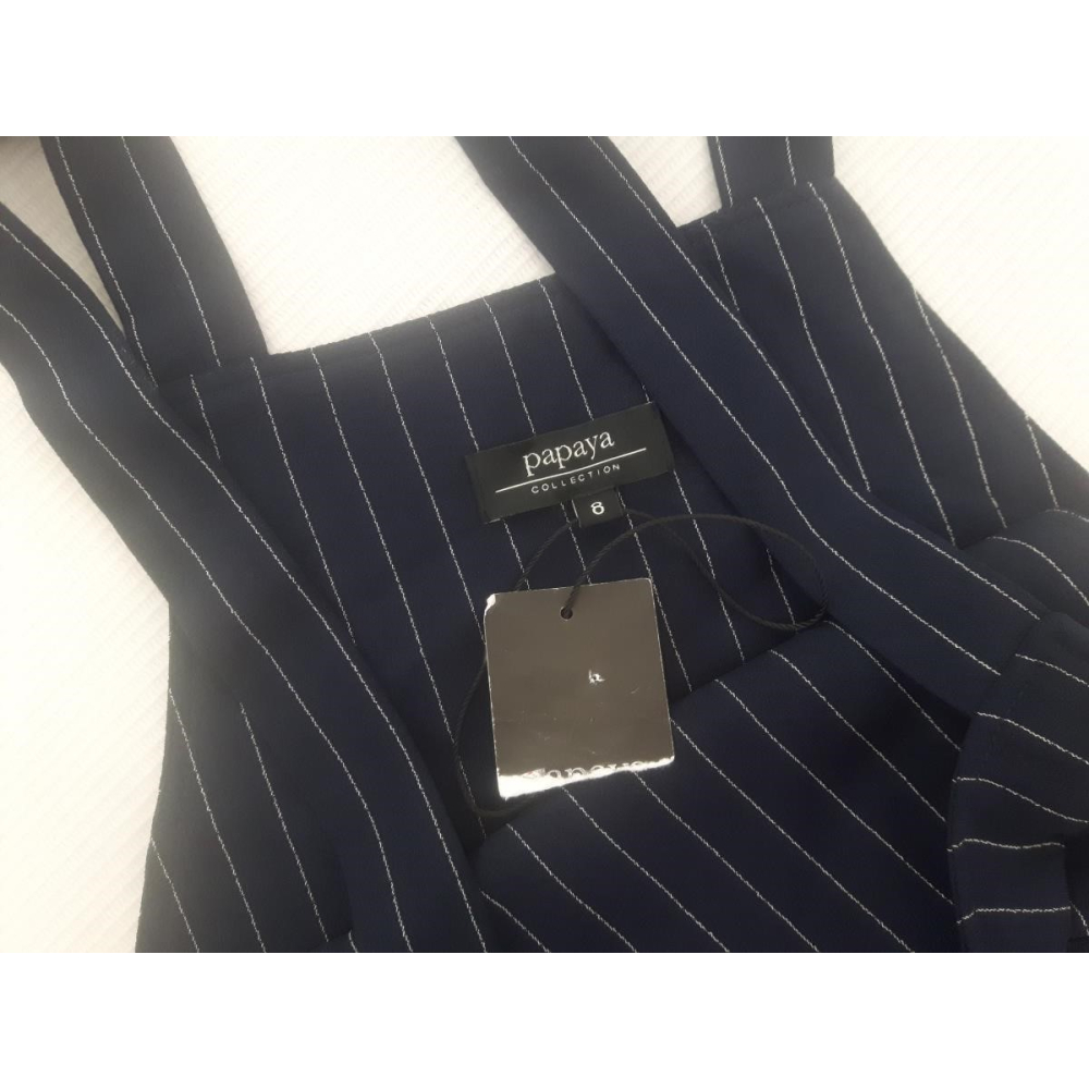 PAPAYA granatowa SUKIENKA OGRODNICZKA mini PASKI NOWA _ 36