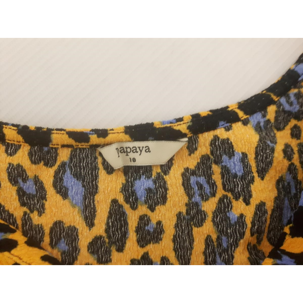 Elegancka bluzka damska marki PAPAYA w stylu oversize z cętkami. Idealna propozycja na letnie dni, zapewniająca wygodę i swobodę. Modny i uniwersalny element garderoby, który pasuje do wielu stylizacji. Rozmiar z metki: 46 Stan: bardzo dobry WYMIARY: Długość: 57 cm Obwód pod pachami: 115 cm Obwód w pasie: 120 cm |