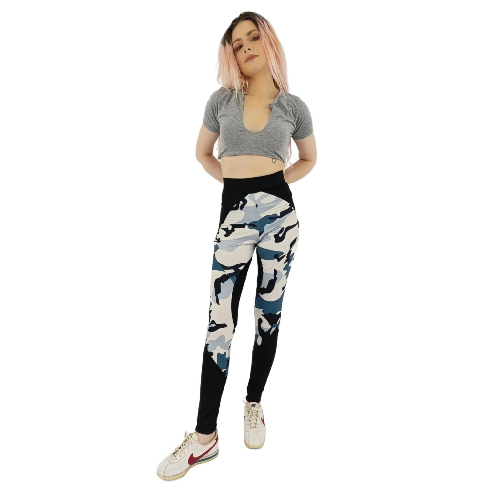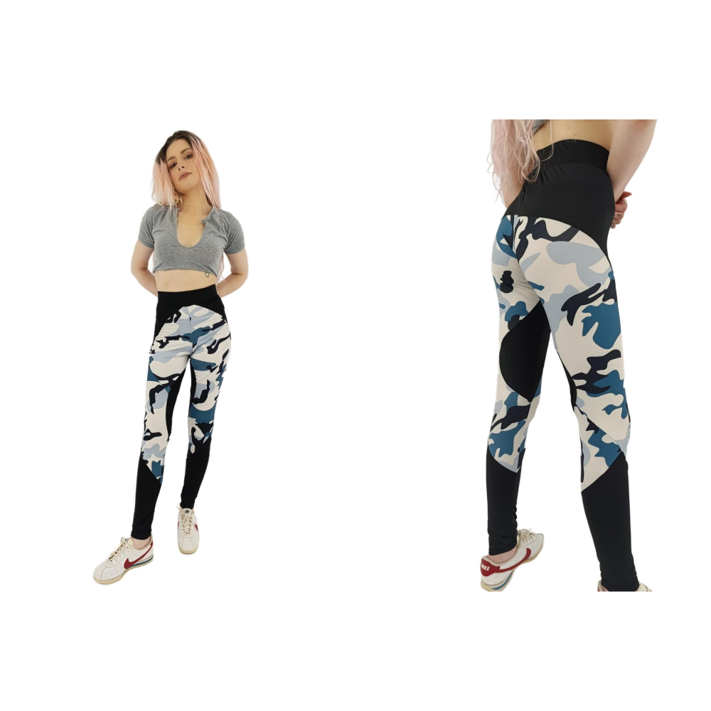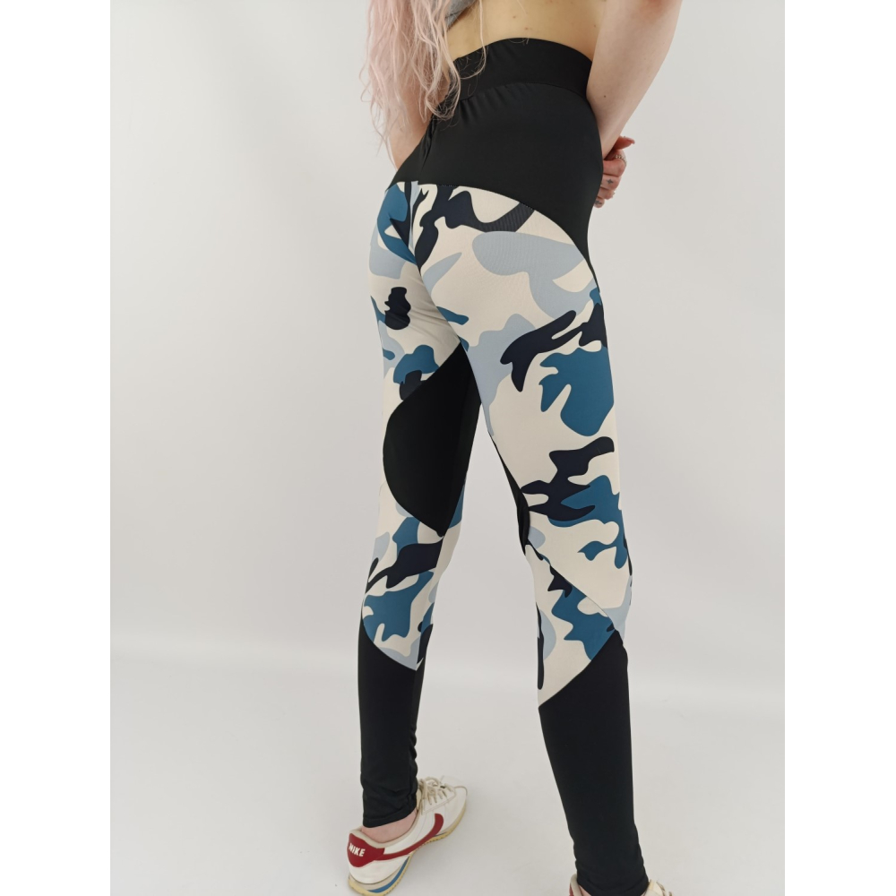 modne sportowe legginsy z wysokim stanem moro wygodne _ m