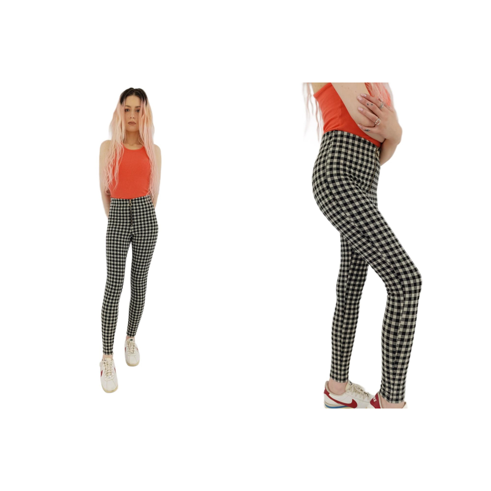 Legginsy damskie marki ZARA o wysokim stanie w kratkę. Idealne na każdą okazję. Rozmiar z metki: XS Stan: bardzo dobry WYMIARY: Obwód w pasie: 65-75 cm Obwód w biodrach: 80-92 cm Długość nogawki od pasa: 91 cm Długość nogawki od kroku: 70 cm Szerokość nogawki na wysokości kroku: 21 cm Szerokość nogawki u dołu: 10 cm |