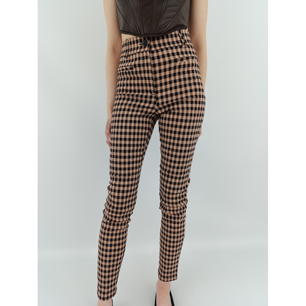 primark elastyczne spodnie rurki z wysokim stanem kratka modne _ 36