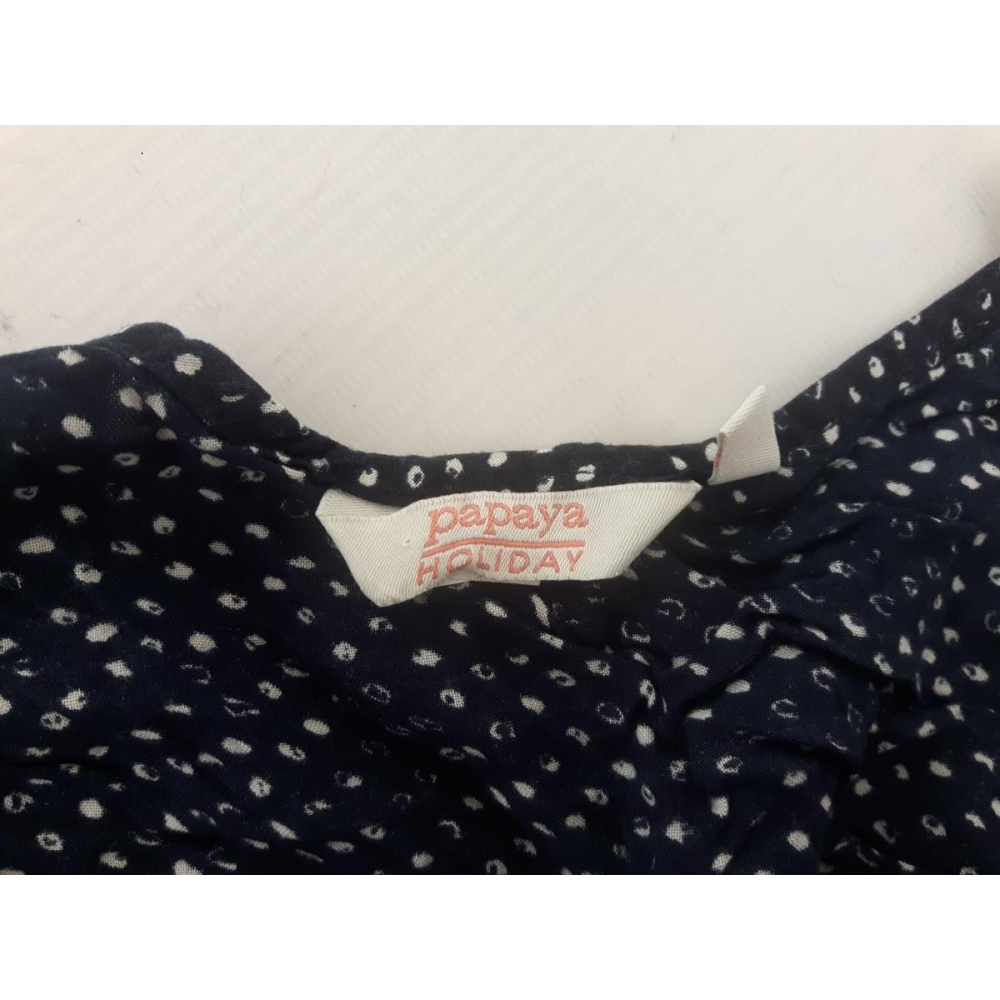 Bluzka damska marki Papaya wykonana z cienkiej wiskozy idealna na lato. Modny wzór sprawia, że jest doskonałym wyborem na letnie dni. Doskonały wybór na letnie dni. Rozmiar z metki: 40 Stan: bardzo dobry WYMIARY: Długość bez wiązania: 38 cm Obwód pod pachami: 95 cm Obwód w pasie: 95 cm |