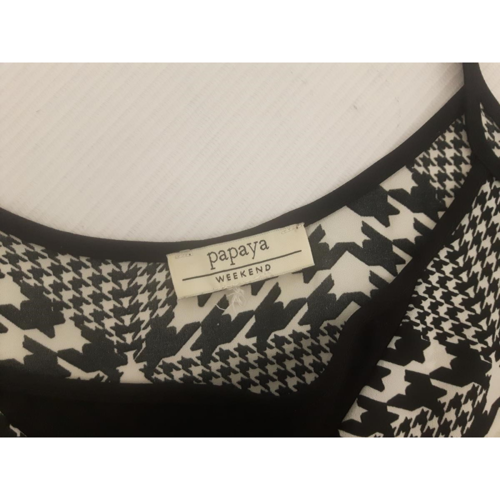 Stylowa bluzka damska marki Papaya z cienkiego materiału idealna na lato. Posiada wzorzysty design, który dodaje jej wyjątkowego uroku. Wygodna i lekka, doskonała na letnie dni. Rozmiar z metki: 36 Stan: bardzo dobry WYMIARY: Długość: 69 cm Obwód pod pachami: 90 cm Obwód w pasie: 88 cm |