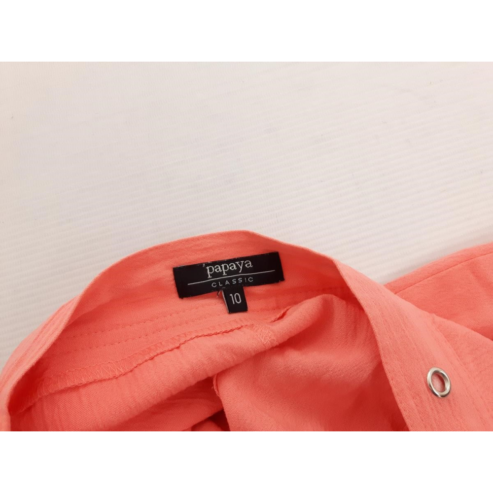 Krótkie spodenki damskie marki Papaya idealne na letnie dni. Wykonane z wysokiej jakości wiskozy, modny wysoki stan. Doskonały wybór na sezon lato! Rozmiar z metki: 38 Stan: bardzo dobry- (brak sznurka w pasie). WYMIARY: Obwód w pasie: 70-80 cm Obwód w biodrach: 100-105 cm Długość nogawki od pasa: 45 cm Długość nogawki od kroku: 18 cm Szerokość nogawki na wysokości kroku: 34 cm Szerokość nogawki u dołu: 30 cm |