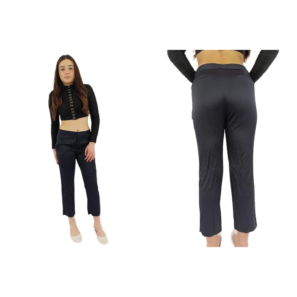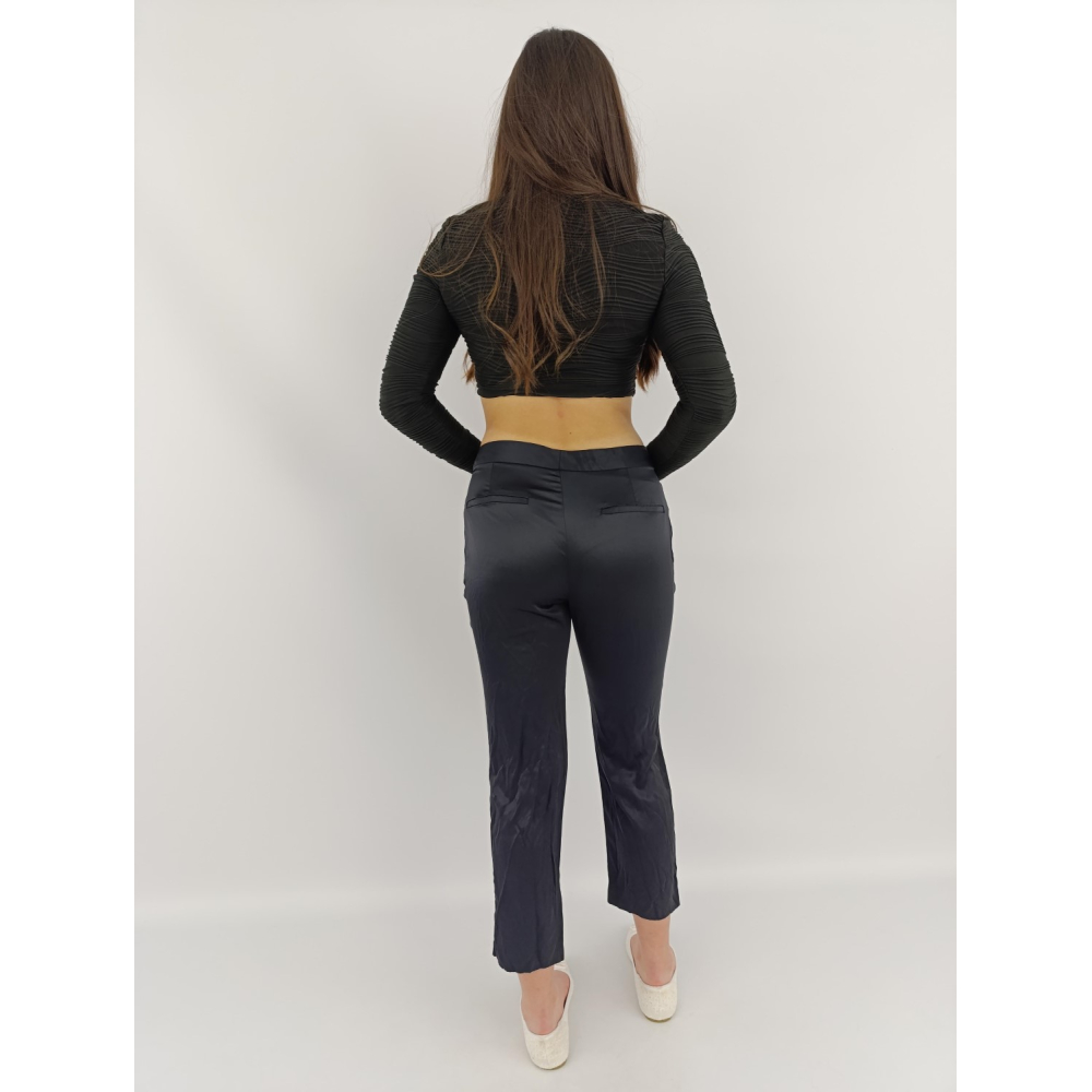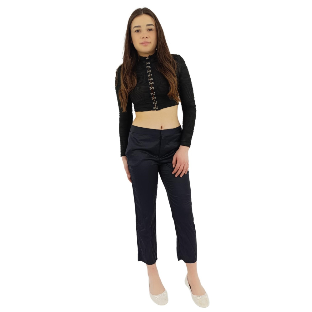 zara eleganckie spodnie cygaretki satynowe modne navy _ s