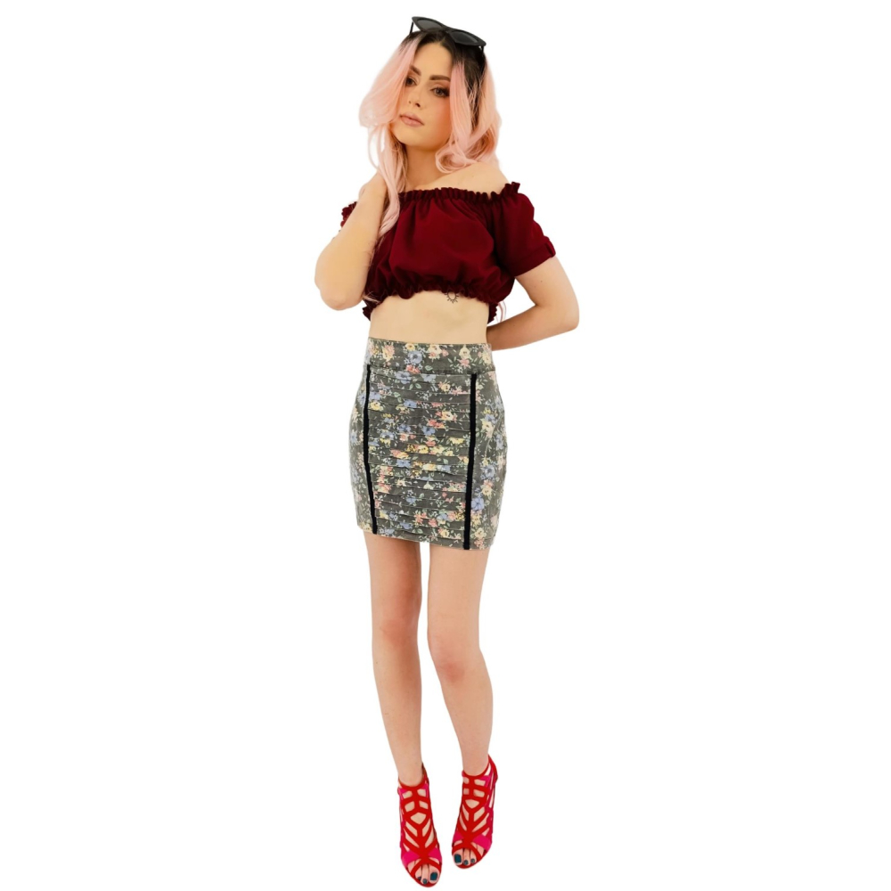 zara jeansowa spódniczka postarzana kwiaty ołówkowa _ s