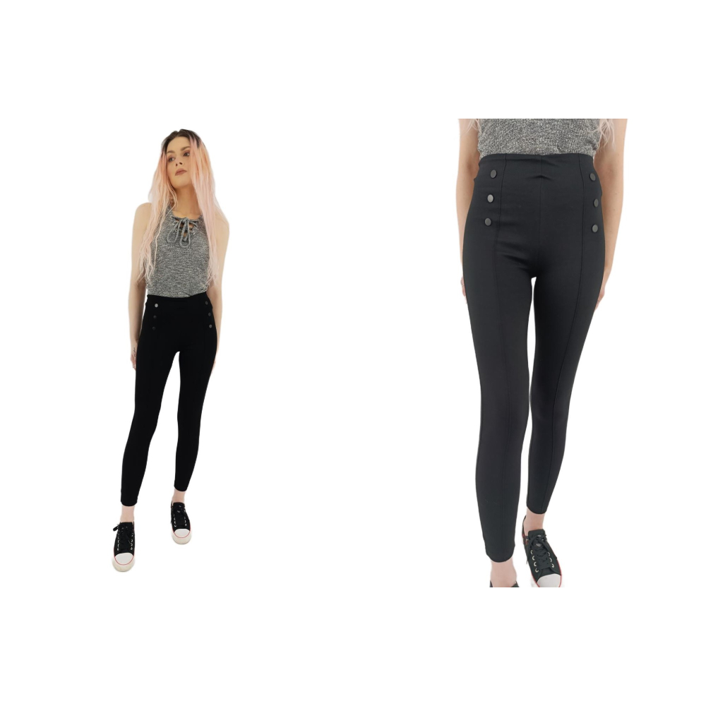 primark dzianinowe legginsy dwurzędowe modne wysoki stan _ 34