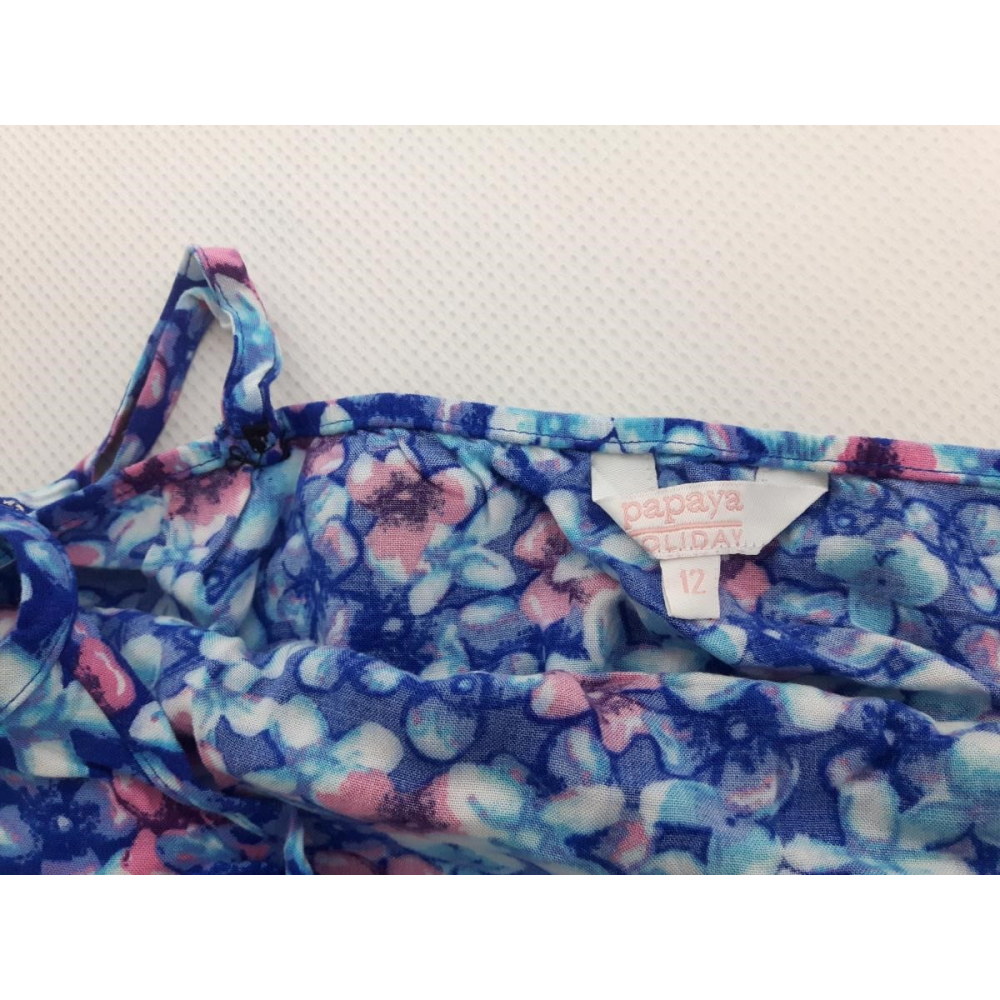 Piękny i wygodny plażowy kombinezon damski marki Papaya ozdobiony kwiatowym wzorem idealny na lato. Wykonany z lekkiej wiskozy, modny i komfortowy w noszeniu. Doskonały wybór na letnie dni nad morzem lub na wakacyjny wyjazd. Cechy dodatkowe: z kieszeniami. Rozmiar z metki: 40 Stan: bardzo dobry WYMIARY: Długość bez regulowanych ramiączek: 65 cm Obwód pod pachami: 95-100 cm Obwód w pasie: 75-85 cm Obwód w biodrach: 105 cm Długość nogawki od pasa: 32 cm Długość nogawki od kroku: 5 cm Szerokość nogawki na wysokości kroku: 34 cm Szerokość nogawki u dołu: 34 cm |