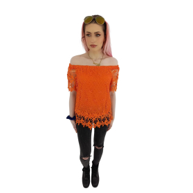 papaya ażurowa bluzka hiszpanka boho krótki rękaw kwiaty _ 38